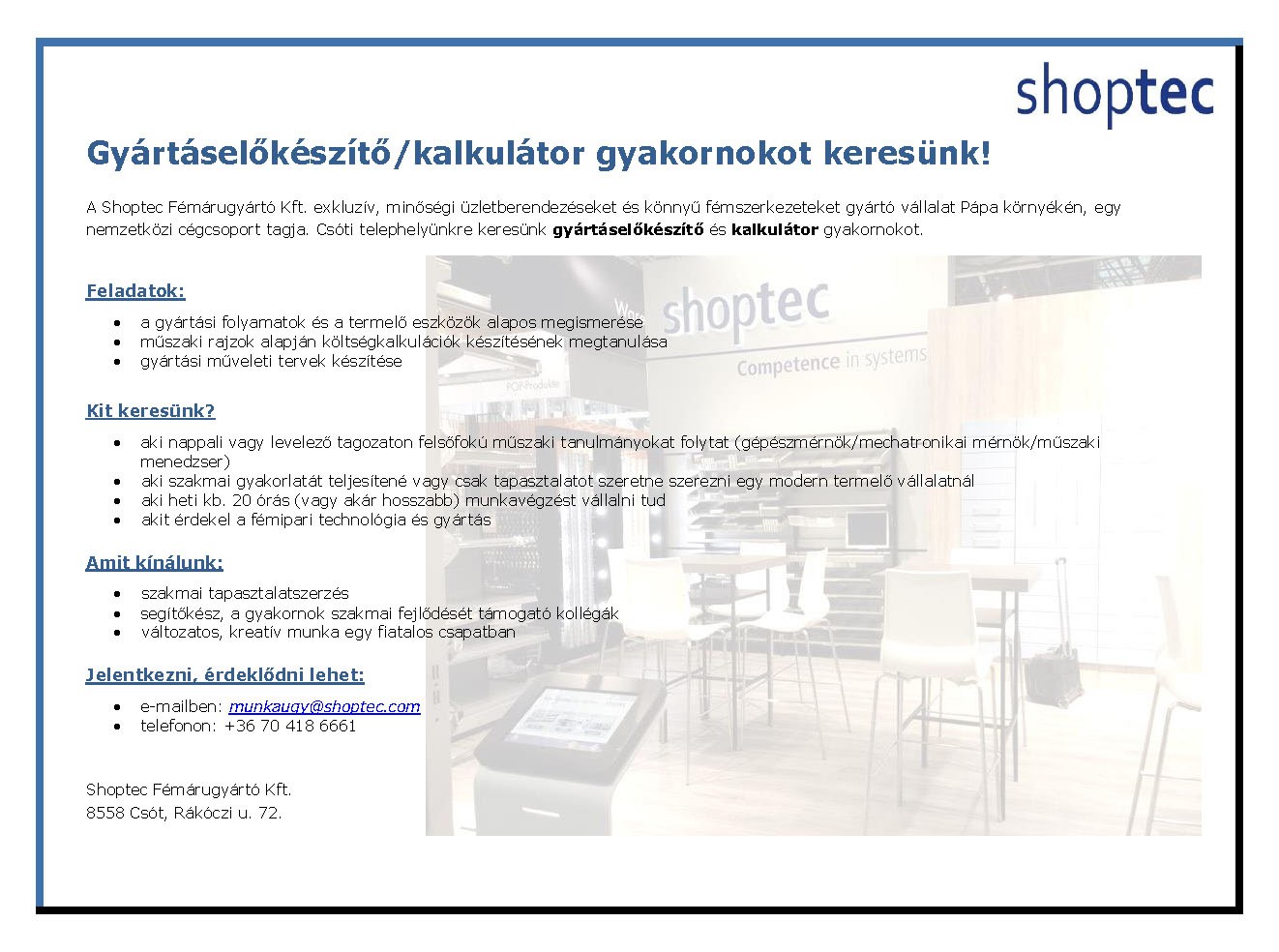 Jelentkezés önéletrajz és motivációs levél küldésével lehetséges a