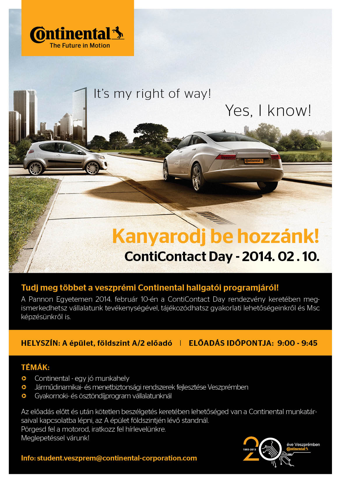 Kanyarodj be hozzánk és tudj meg többet a veszprémi Continental hallgatói programjáról! 2014. február 10-én várunk sok szeretettel a ContiContact Day-en!