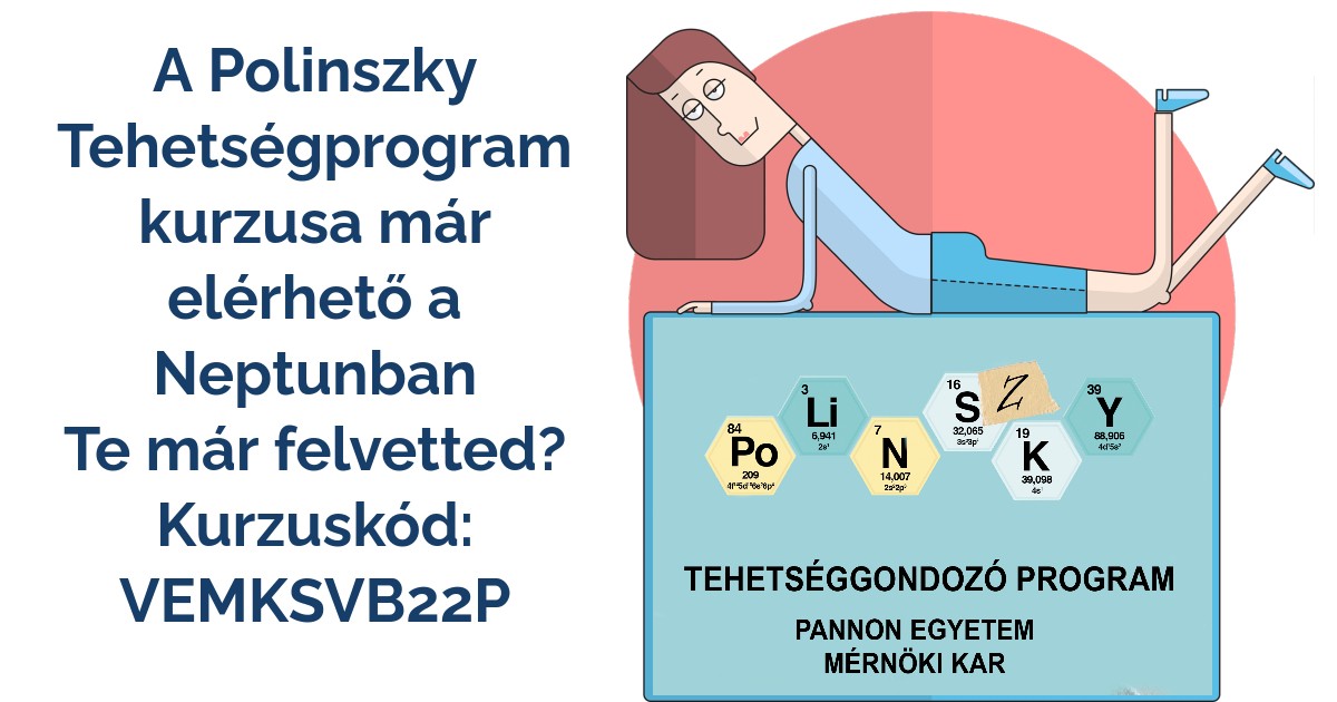 A Mérnöki Kar hallgatói jövő hét hétfőig (2022.09.19) még felvehetik a A Polinszky Tehetséggondozó Program: készség- és képességfejlesztés tantárgyat. A tárgy kódja: VEMKSVB22P